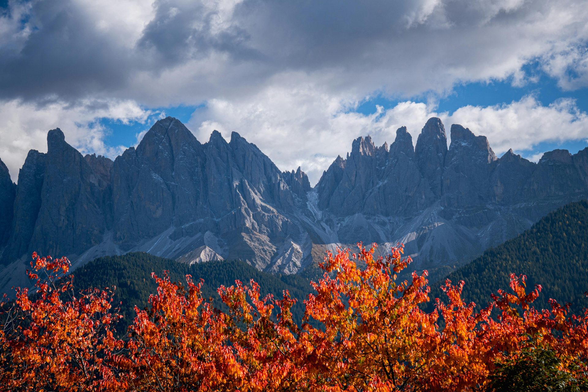 Jen málo horských masivů na světě se mění s ročním obdobím tak dramaticky jako Dolomity v severní Itálii. V létě jsou rušné, téměř hlučné díky turistům a cyklistům, teploty zde mohou stoupat vysoko a opalovací krém je rozhodně nutnost. Ale na podzim se promění v klidné a kontemplativní místo, kde stěží potkáte mnoho dalších turistů. Počasí je obvykle mírnější a často se zde dá putovat i během listopadu.